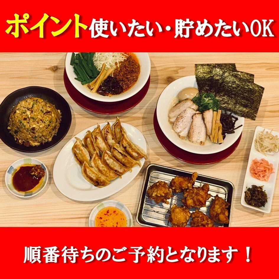 ポイント使いたい・貯めたい方にもおすすめ!ネット予約で順番待ち予約が可能となっております!ランチ・ディナーでお得にお楽しみいただけます!余ったポイントなどをご利用いただけますのでぜひどうぞ!【西春/西春駅/ラーメン/中華/ランチ/ディナー/北名古屋/北名古屋市/北区/餃子/中華そば/豚骨】